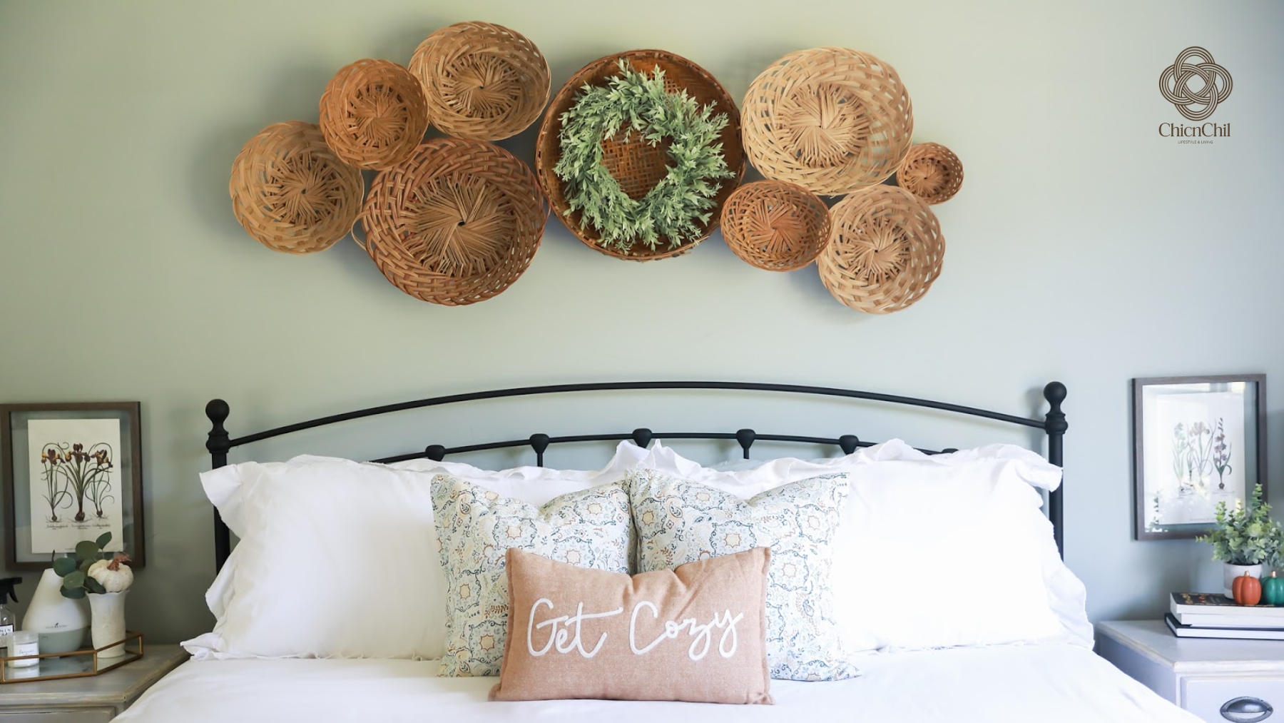 Handmade baskets are versatile decor pieces that add texture and warmth to flat dorm walls. Chicnchill offers handcrafted baskets from Vietnam, where artisans paint unique images on natural fibers, creating a rustic yet luxurious appeal for your space.