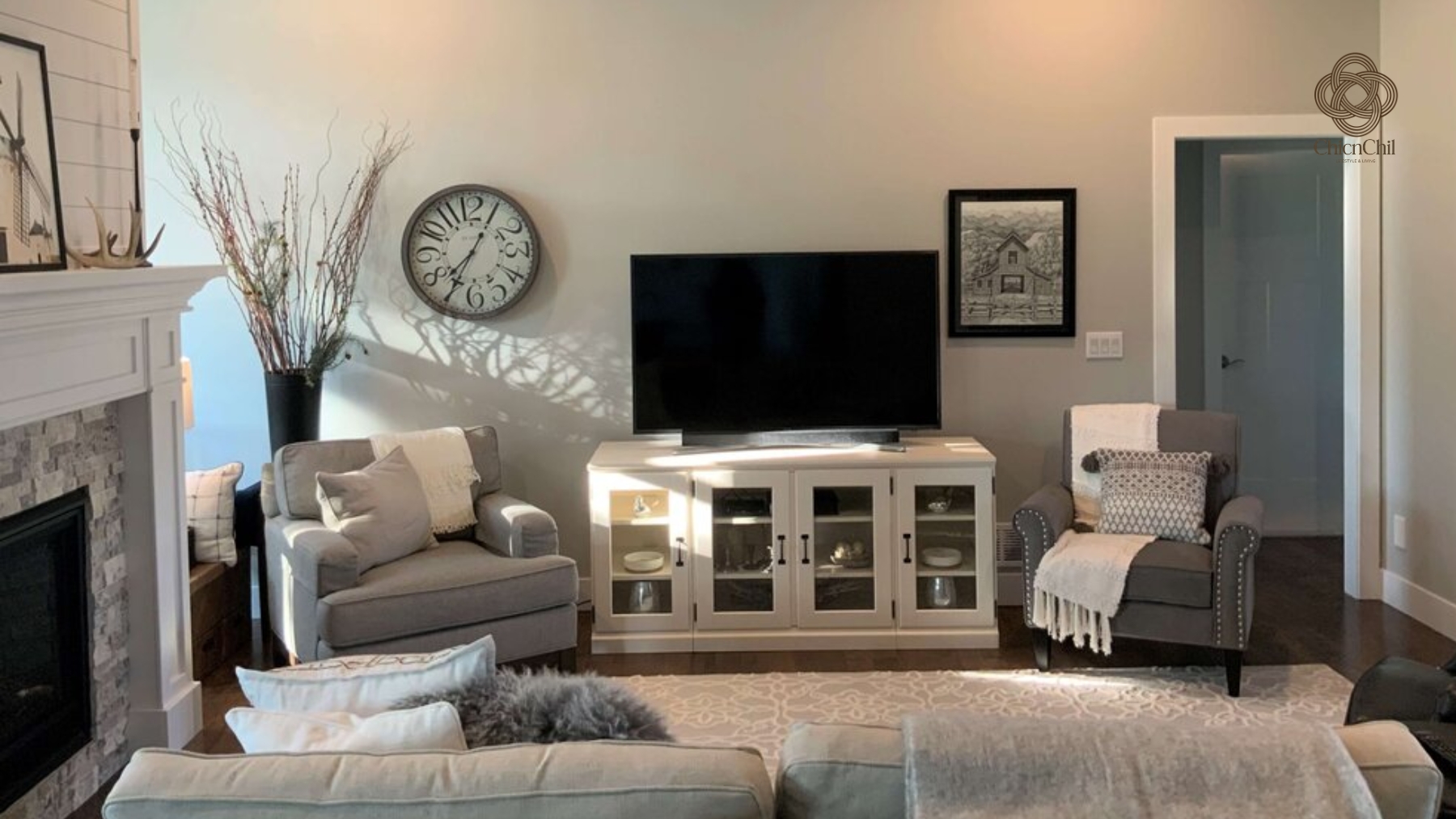 Placing a TV on a wooden cabinet or mounting it amidst framed art helps it blend into your overall design. By clearing space for a few natural decor items from Chicnchill, you keep the area looking curated rather than cluttered.